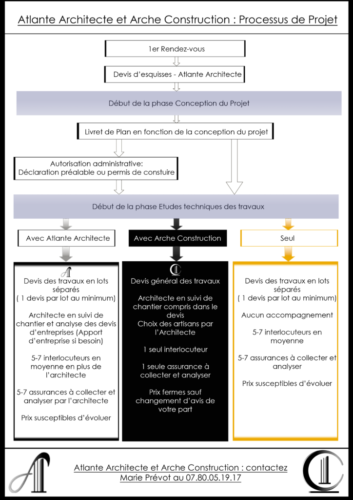 - Soit nous fonctionnons suivant le schéma classique Architecte-Maître d’œuvre, avec Atlante Architecte en suivi de chantier